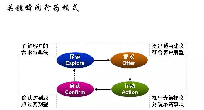 Frank介紹道:MOT是Moments of Truth(關(guān)鍵時刻)的英文縮寫,是美國某公司斥巨資開發(fā)的一門課程,該課程是為改變企業(yè)人員的行為模式而設(shè)計,課程中介紹了服務(wù)客戶的四步行為(EAOC模型)模式,旨在將幫助同事們學(xué)習(xí)如何在與客戶的交流過程中運用這些行為模式。