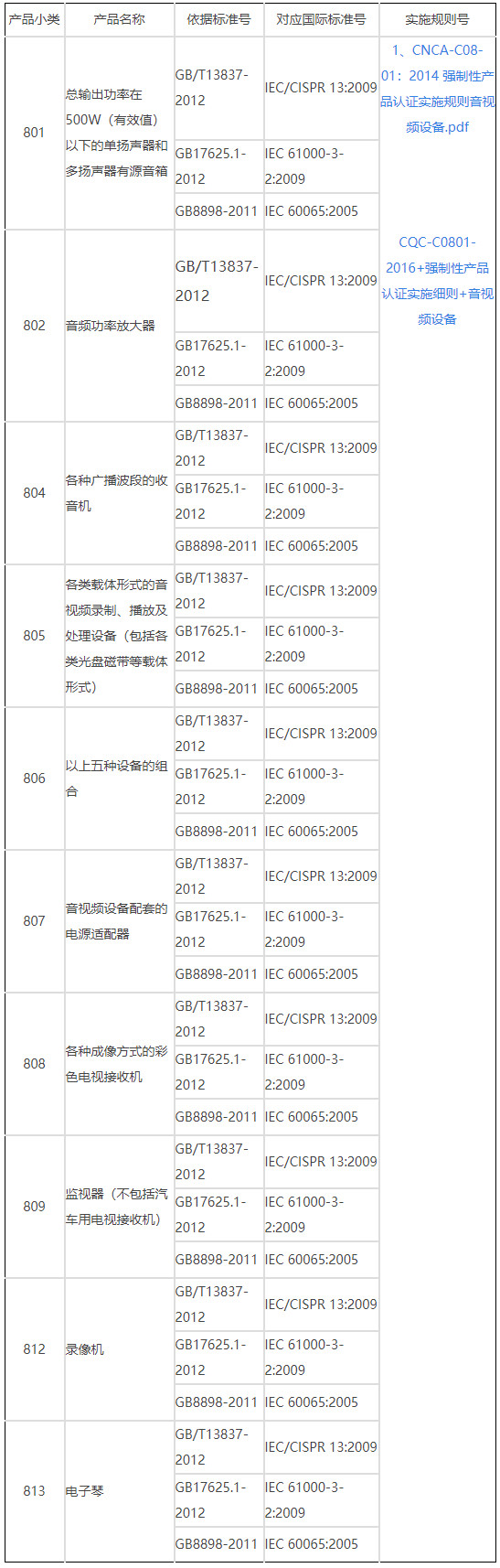 國家認(rèn)監(jiān)委對音視頻設(shè)備實施規(guī)則進行了修訂,《強制性產(chǎn)品認(rèn)證實施規(guī)則  音視頻設(shè)備》(編號:CNCA-C08-01:2014,以下簡稱新版規(guī)則)已于2014年7月16日正式發(fā)布,并自2014年9月1日起實施,3C新版規(guī)則替代了《電氣電子產(chǎn)品類強制性產(chǎn)品認(rèn)證實施規(guī)則  音視頻設(shè)備》。