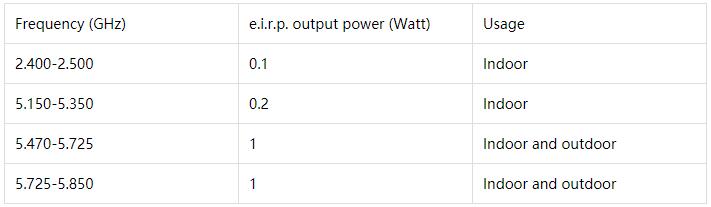 2. 2.4G&5GHz輸出功率限值(EIRP)