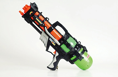 每到夏天,水槍便成了孩子們之間流行的玩具。近日,一款帶水箱的加壓水槍玩具成為戲水活動的“新寵”。這款水槍由三部分組成:卡通造型的背包水箱、軟管以及槍體。水槍上裝有一個推拉栓,為槍體加壓。水槍外包裝上強調:推拉式槍體是現在公認的射程最遠的水槍槍體構造,原因是槍體留給橡膠泵的距離最長,壓強也大。水槍外包裝上標明“適合7歲以上兒童”,除此之外沒有任何安全警示。
