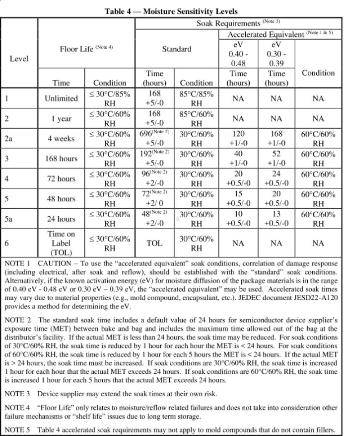 MSL 2:元件可以在不超過30°C和60%相對濕度的環境下存放一年,而不會對其性能產生影響。