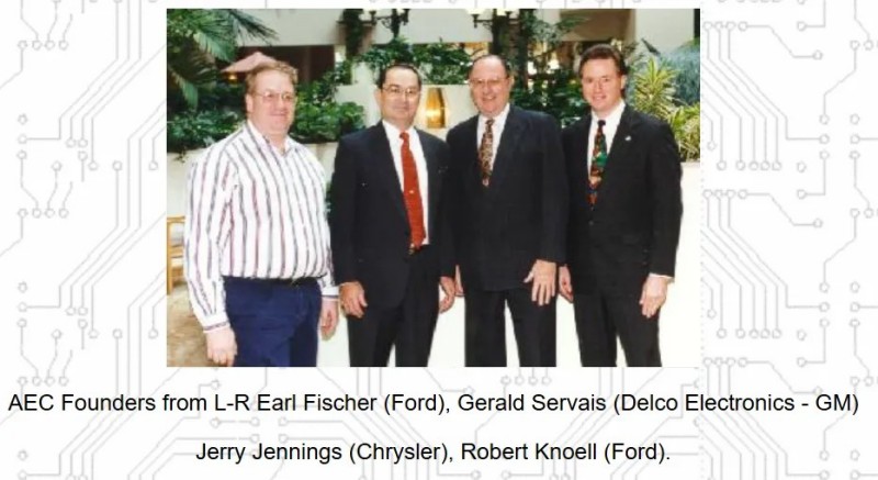 1994 年,克萊斯勒、福特和通用汽車三大主機(jī)廠為建立一套通用的零件資質(zhì)及質(zhì)量系統(tǒng)標(biāo)準(zhǔn)而設(shè)立了汽車電子委員會 AEC(Automotive Electronics Council),符合AEC規(guī)范的零部件均可被三家車廠同時(shí)采用。此舉推動(dòng)了汽車零部件通用性的實(shí)施,為車載電子市場的快速增長奠定基礎(chǔ)。目前AEC會員遍及全球各大汽車廠與汽車電子和半導(dǎo)體廠商,AEC-Q為AEC組織所制訂的車用可靠性測試標(biāo)準(zhǔn)。