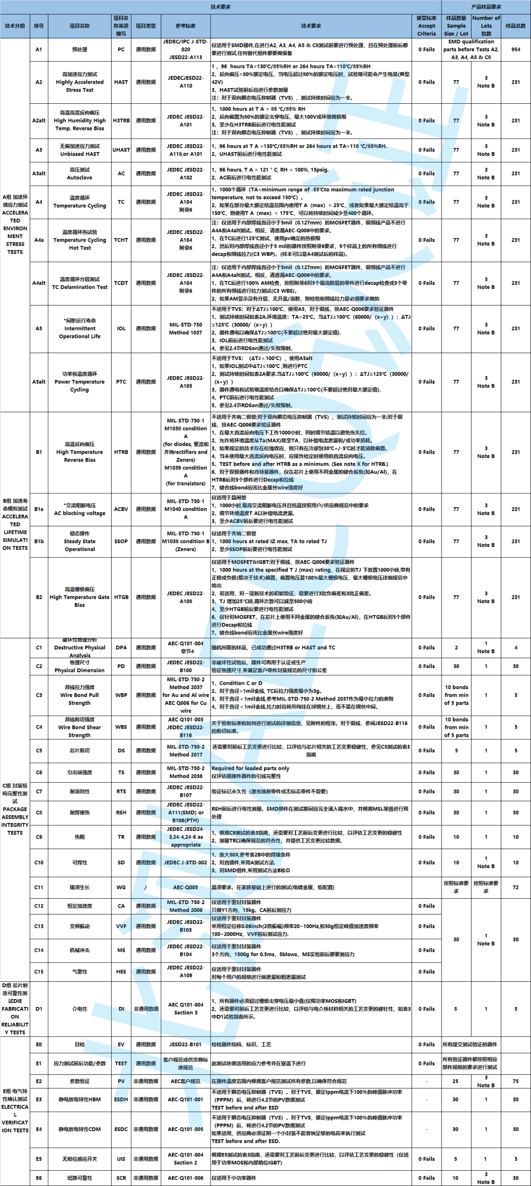 ④ AEC-Q101測(cè)試項(xiàng)目分組