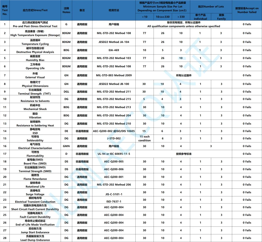 AEC-Q200測(cè)試項(xiàng)目分組