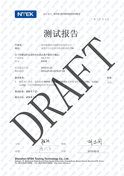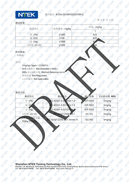 ROHS檢測報告范本:
