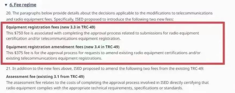加拿大于2023年7月5號通知,ISED無線設備列名費$50/Listing將被廢除,產生新的設備注冊費,費用分為以下兩種: